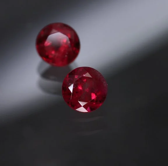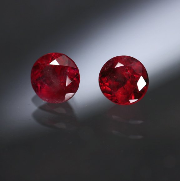 Red Beryl is certainly one of the best known and most unique of the gemstones of the United States. What we almost never see are fine matched pairs of this rare species as the cost of rough and variations in color almost always preclude cutting them. This is a lovely pair with top color in an attractive shape. Truly remarkable for this species is the fine degree of matching, such pairs are often left wanting in some respect - not at all the case here, these are fantastic! An extremely rare accent pair.