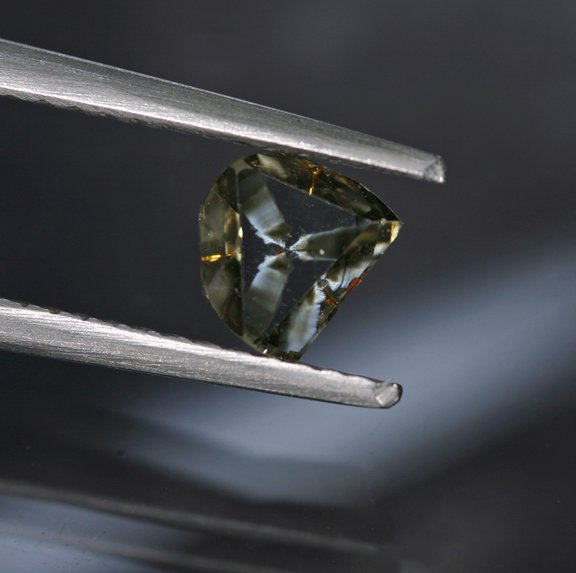 A singular gem which is something of a play on the asteriated Diamonds that have been well documented of late. Here, the hydrogen clouds have formed a kind of three-armed ‘star’ pointing to, rather than radiating from, the center of the stone. The crystal itself is a macle, so the shape works quite well as a polished freeform that makes for a portrait cut appearance. The size is great and the pattern is extremely distinct from the surrounding gem (the clouds can sometimes be quite light and a bit hard to discern at a distance). It is an effect that grabs from across the room - the stone is essentially double-sided so you could set it in a number of orientations. An odd pattern that we have not seen before and quite rare as such. With GIA report as well.
