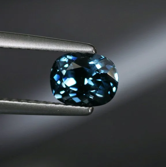A classic deeply colored cushion Spinel in a kind of deep teal blue shade that has been coming out of Sri Lanka periodically for decades. Each year, fine larger stones get scarcer and we are seldom able to offer these at 'old' price points. Perfectly clean, the very nice pairing of dark tone and this unusual mix of blue with a strong greenish modifier - the tone is nicely lightened a bit by the fine cutting and polish. Quite lovely and affordable.