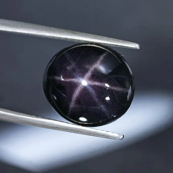 Idaho star Garnets are quite well known and have been popular for years as the asterism can be quite strong. 4-ray stars are much more common, as they are from other finds worldwide, and the 6-ray gems are particularly prized. This fine, larger stone has a very defined 6-ray star set against the classic very dark purple bodycolor. Superb size and a great cut and polish - with zero extra weight - round out what is among the best of these we have seen. A great US stone.