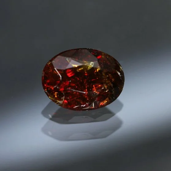 As we have an Ekanite listed this month as well, we thought it might be clever to offer a gem example of the other collected species that is somewhat radioactive. Thus we have what is actually an uncommonly nice Monazite. These are often so included as to be opaque - we have never had one with a relative degree of brilliance. Still quite included mind you, but with a very nice deep red bodycolor and of a significant size. If you have looked at Monazite before, it is likely you will be able to see just how nice this one is.
