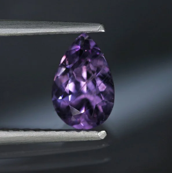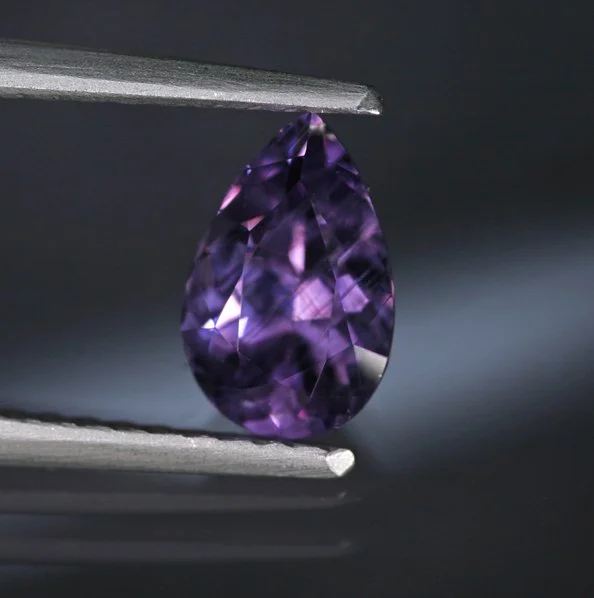 Surely one of the most requested gem material of the last years and with good reason. Purple Spinel is not an uncommon gem, but in a saturated color that is not overly gray certainly is. These Vietnamese stones are some of the best ever produced and we can never find enough to satisfy demand. This is the lovely dominant purple color, saturated and bright that is close to fine Amethyst. While there are no inclusions per se, there are a few of the thin bands of ‘silk’ which are actually diagnostic displacement growth features of Vietnamese stones. Great cutting and lovely.