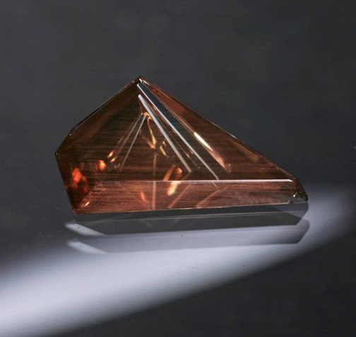 If you are a site regular, then you know that we are a fan of the works of late gem artist Tom Munsteiner. The stones that came out of his Idar-Oberstein workshop are sculptural works of gem art that highlight, but do not overshadow the materials that he sourced. Here we have one of the few US materials that the atelier works with - Oregon Sunstone. Great looking, deceivingly complex design that plays with color along with a superb and dazzling copper schiller. Masterful indeed.